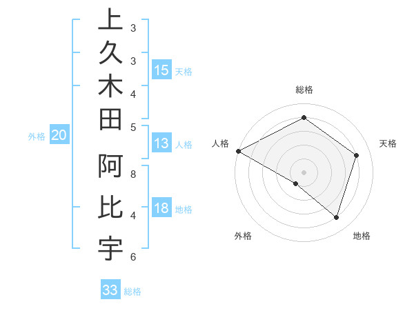 上久木田 阿比宇さんを姓名の画数から五運を鑑定