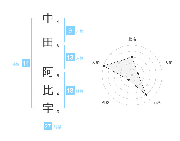 中田 阿比宇さんを姓名の画数から五運を鑑定