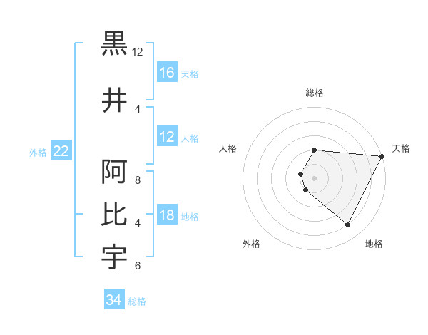 黒井 阿比宇さんの天格は16画の5点!