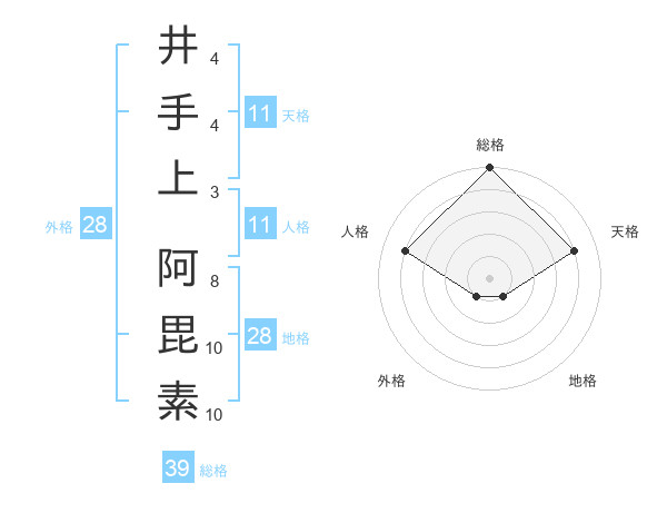井手上 阿毘素さんを姓名の画数から五運を鑑定
