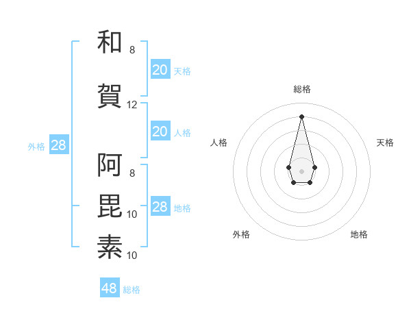 和賀 阿毘素さんを姓名の画数から五運を鑑定