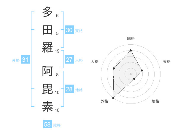 多田羅 阿毘素さんの外格は31画の5点!