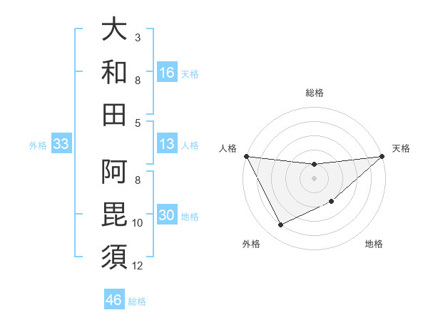 大和田 阿毘須さんを姓名の画数から五運を鑑定