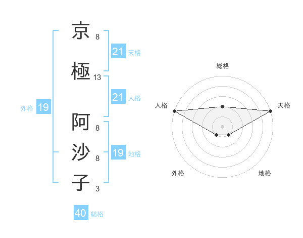 京極 阿沙子さんの天格は21画の5点!