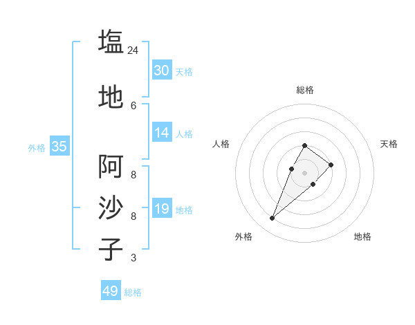 塩地 阿沙子さんの総格は49画の2点!