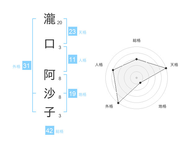 瀧口 阿沙子さんを姓名の画数から五運を鑑定