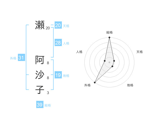瀬 阿沙子さんの外格は31画の5点!