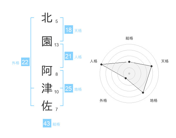 北園 阿津佐さんを姓名の画数から五運を鑑定
