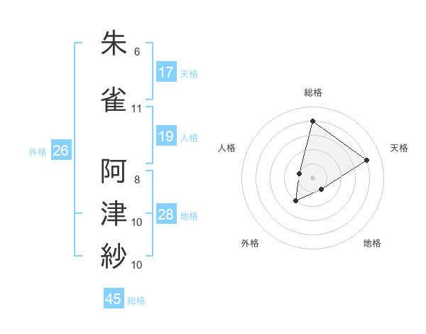 朱雀 阿津紗さんの天格は17画の4点!