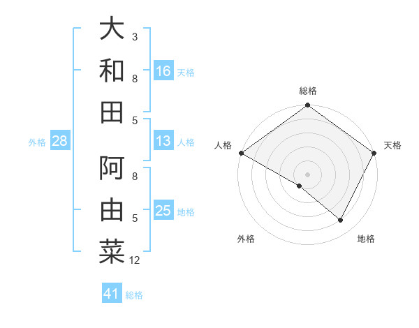 大和田 阿由菜さんの天格は16画の5点!