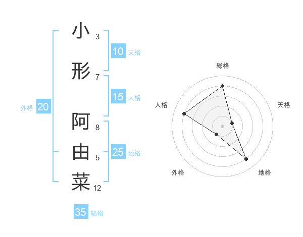 小形 阿由菜さんを姓名の画数から五運を鑑定