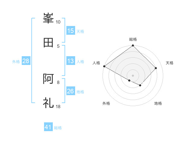 峯田 阿礼さんを姓名の画数から五運を鑑定