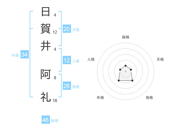 日賀井 阿礼さんを姓名の画数から五運を鑑定