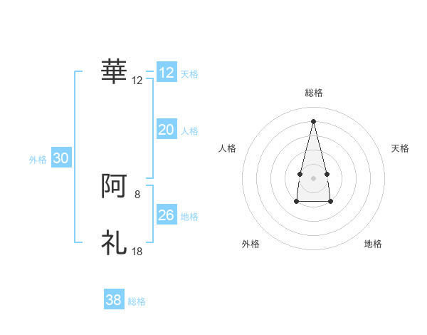 華 阿礼さんの総格は38画の4点!