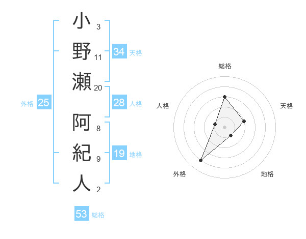 小野瀬 阿紀人さんを姓名の画数から五運を鑑定