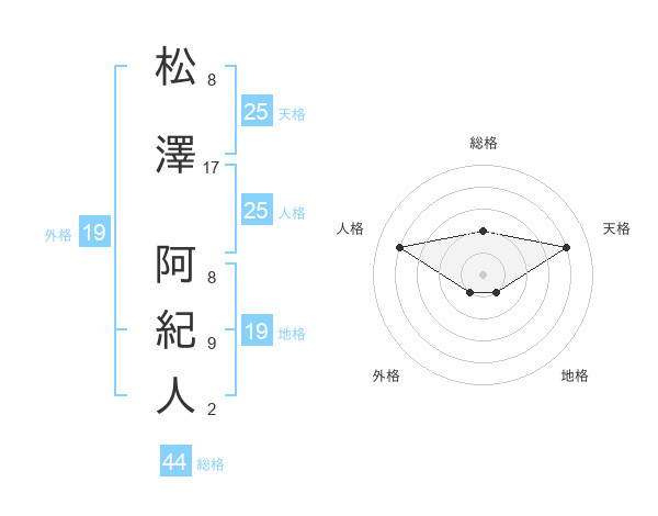 松澤 阿紀人さんを姓名の画数から五運を鑑定
