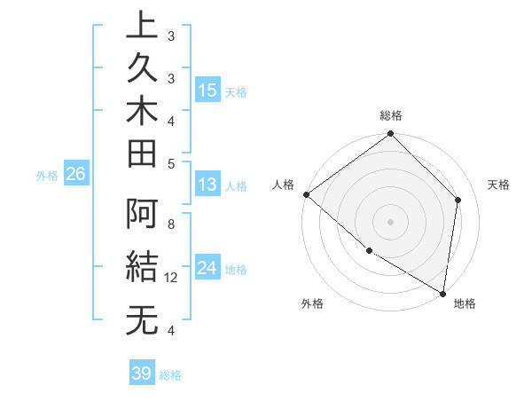 上久木田 阿結无さんを姓名の画数から五運を鑑定