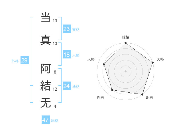 当真 阿結无さんを姓名の画数から五運を鑑定