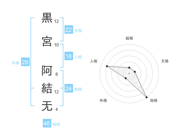 黒宮 阿結无さんを姓名の画数から五運を鑑定