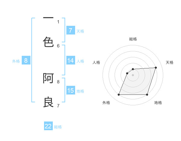 一色 阿良さんの総格は22画の1点
