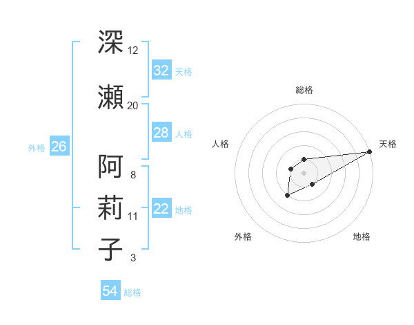 深瀬 阿莉子さんの天格は32画の5点!