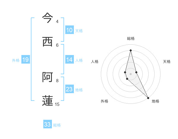 今西 阿蓮さんを姓名の画数から五運を鑑定