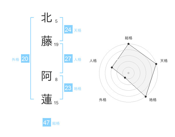 北藤 阿蓮さんを姓名の画数から五運を鑑定