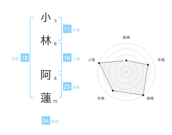 小林 阿蓮さんを姓名の画数から五運を鑑定