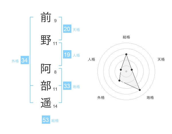 前野 阿部遥さんを姓名の画数から五運を鑑定