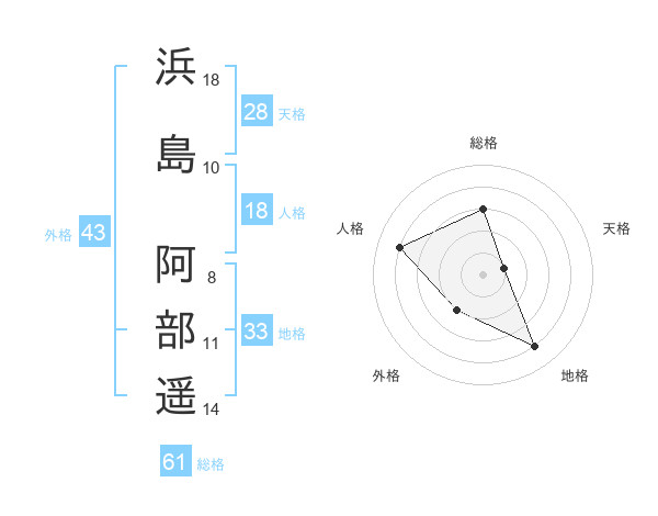 浜島 阿部遥さんの人格は18画の4点