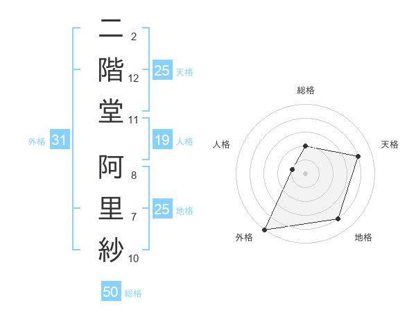 二階堂 阿里紗さんを姓名の画数から五運を鑑定