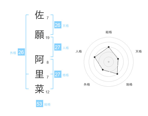 佐願 阿里菜さんを姓名の画数から五運を鑑定