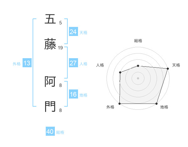 五藤 阿門さんを姓名の画数から五運を鑑定