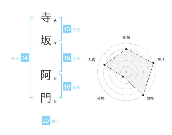 寺坂 阿門さんの総格は29画の4点!
