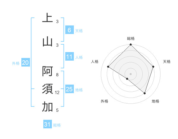 上山 阿須加さんを姓名の画数から五運を鑑定
