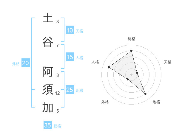 土谷 阿須加さんを姓名の画数から五運を鑑定