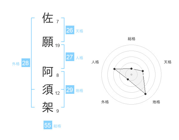 佐願 阿須架さんを姓名の画数から五運を鑑定