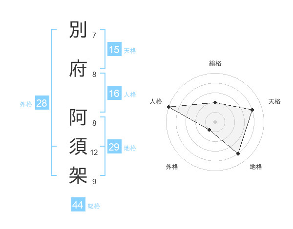 別府 阿須架さんを姓名の画数から五運を鑑定