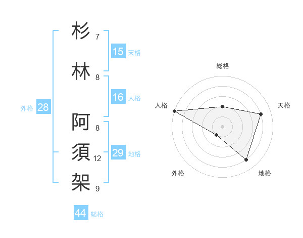 杉林 阿須架さんを姓名の画数から五運を鑑定