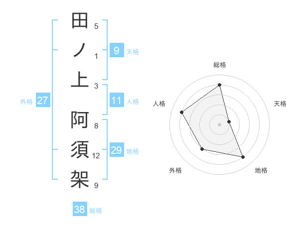 田ノ上 阿須架さんを姓名の画数から五運を鑑定