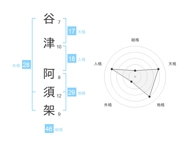 谷津 阿須架さんを姓名の画数から五運を鑑定