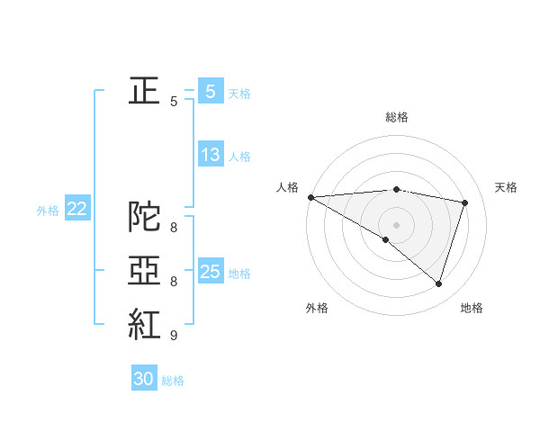 正 陀亞紅さんを姓名の画数から五運を鑑定