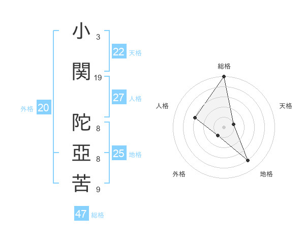 小関 陀亞苦さんを姓名の画数から五運を鑑定