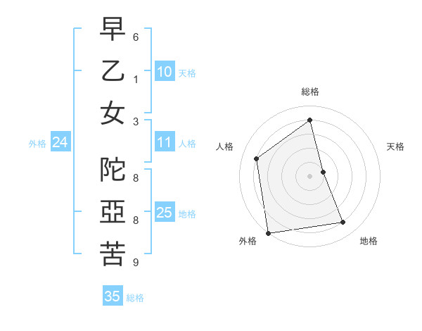 早乙女 陀亞苦さんの総格は35画の4点!