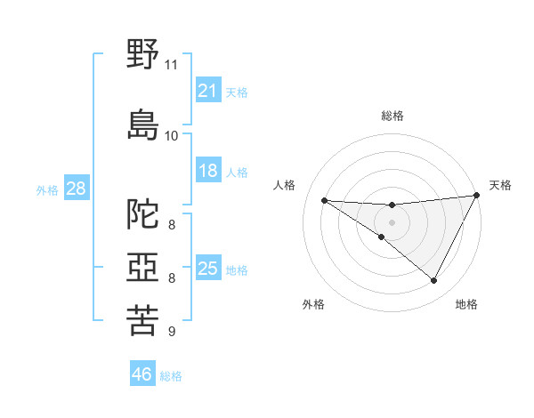 野島 陀亞苦さんを姓名の画数から五運を鑑定