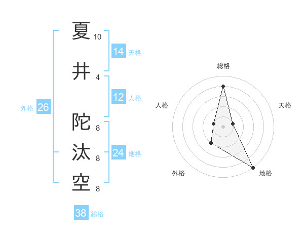 夏井 陀汰空さんを姓名の画数から五運を鑑定