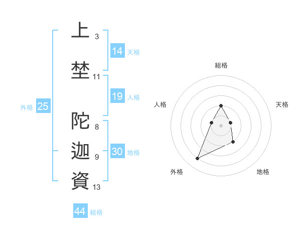 上埜 陀迦資さんを姓名の画数から五運を鑑定