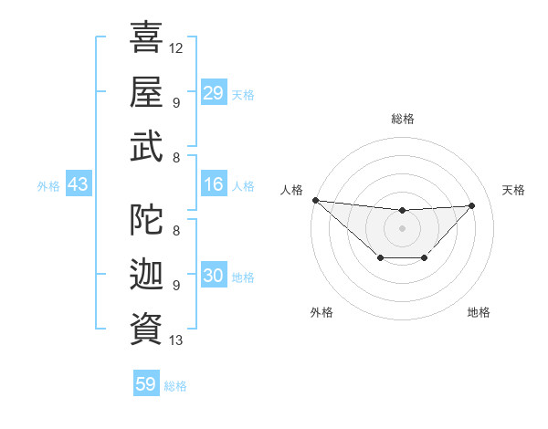 喜屋武 陀迦資さんを姓名の画数から五運を鑑定