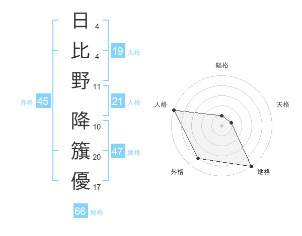 日比野 降籏優さんを姓名の画数から五運を鑑定