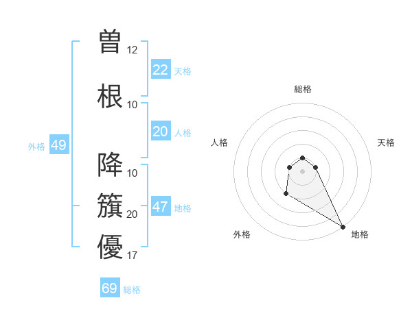 曽根 降籏優さんを姓名の画数から五運を鑑定